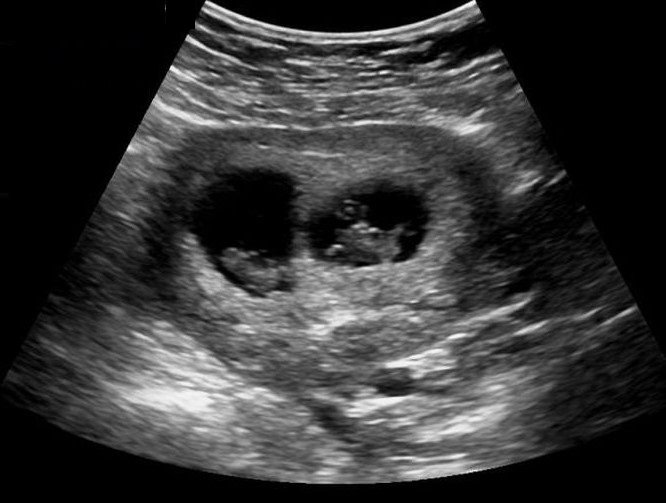 These are usually the 2D black and white scan images you are probably used to seeing in the hospital. This is because at this early stage baby isn’t yet developed enough to see in more detail. The same technology (ultrasound machine and probe) is used later in your pregnancy but is capable of showing you much more detail once your baby is sufficiently developed, usually this is possible from around 16 weeks but best images are taken around 27 weeks. These are the high detail 3D pictures that have a golden look and feel to them.