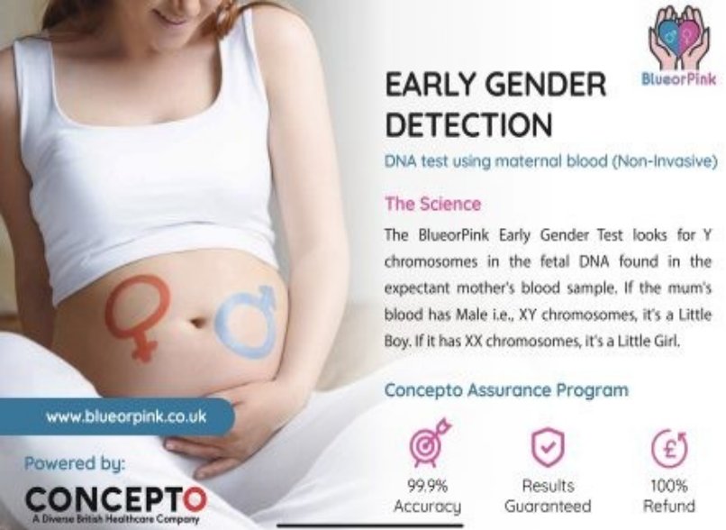 Choose our fast (3-4 days), affordable and highly accurate (99.9%) Blue or Pink Early Gender Test based on a simple blood sample which is then analysed in a UK Laboratory